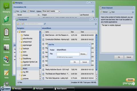 The best web desktop for Android phone, it provides the easiest way to remote manage & control your phone in web browser, totally support all 3G/WiFi/USB connections.
